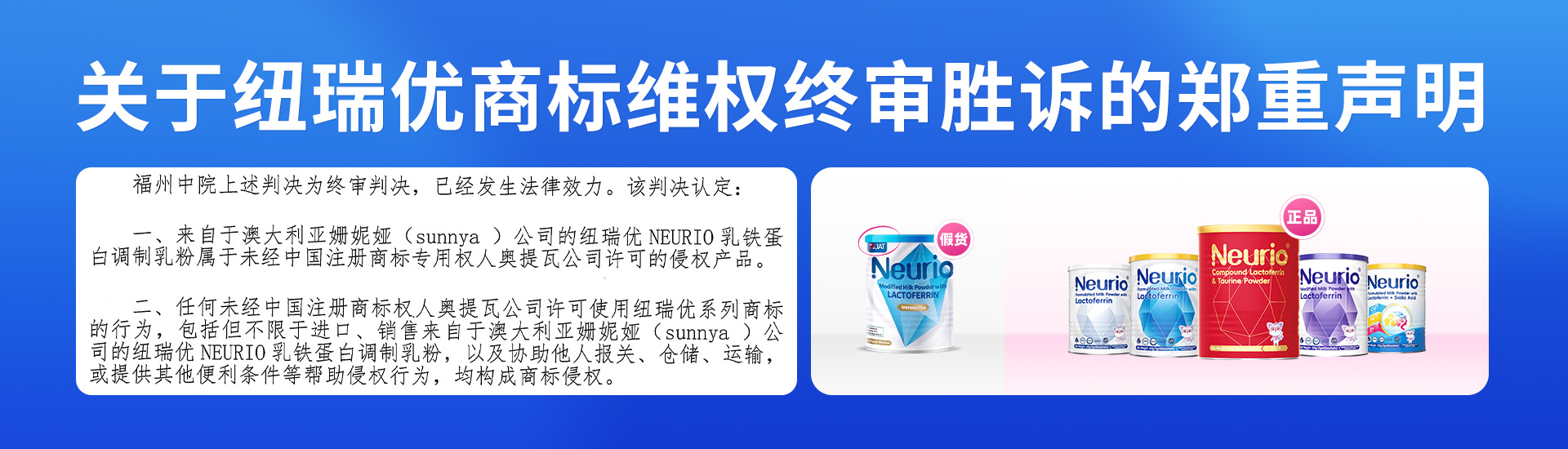 Neurio (中文品牌名:紐瑞優(yōu))意即 “New for You(創(chuàng)新為你)” ,自2011年品牌創(chuàng)建以來(lái), 秉承“創(chuàng)新為你·健康至上” 的理念,讓健康伴隨生活。 紐瑞優(yōu)Neurio產(chǎn)品從國(guó)際引入中國(guó),快速落地生根,并在中國(guó)實(shí)現(xiàn)品牌騰飛!紐瑞優(yōu)持續(xù)努力將自己打造為一個(gè)國(guó)際知名品牌,前期主要以澳新產(chǎn)品為主,現(xiàn)已轉(zhuǎn)型為以國(guó)際產(chǎn)品為主,并堅(jiān)定不移深耕中國(guó)本土化產(chǎn)品,擴(kuò)大國(guó)際營(yíng)銷(xiāo), 實(shí)現(xiàn)從國(guó)際引進(jìn)中國(guó),再?gòu)闹袊?guó)走向國(guó)際,讓紐瑞優(yōu)品牌再上一個(gè)新的臺(tái)階! 自2015年,紐瑞優(yōu)團(tuán)隊(duì)經(jīng)過(guò)不懈努力成功研發(fā)紐瑞優(yōu)乳鐵蛋白系列調(diào)制乳粉,奉獻(xiàn)給熱愛(ài)健康的人們。 紐瑞優(yōu)團(tuán)隊(duì)專(zhuān)注大健康理念,包括孕產(chǎn)婦與胎兒健康,兒童青少年的健康成長(zhǎng)以及中老年人的健康營(yíng)養(yǎng)需求,不斷推陳出新,為大健康理念貢獻(xiàn)自己的一份力量。 紐瑞優(yōu)永不止步,不斷探索和追尋更新的健康理念,不斷自我超越追求更高的目標(biāo), 不斷努力研發(fā)生產(chǎn)符合市場(chǎng)需求的質(zhì)優(yōu)價(jià)美產(chǎn)品,滿(mǎn)足人們對(duì)健康和高品質(zhì)生活的追求!